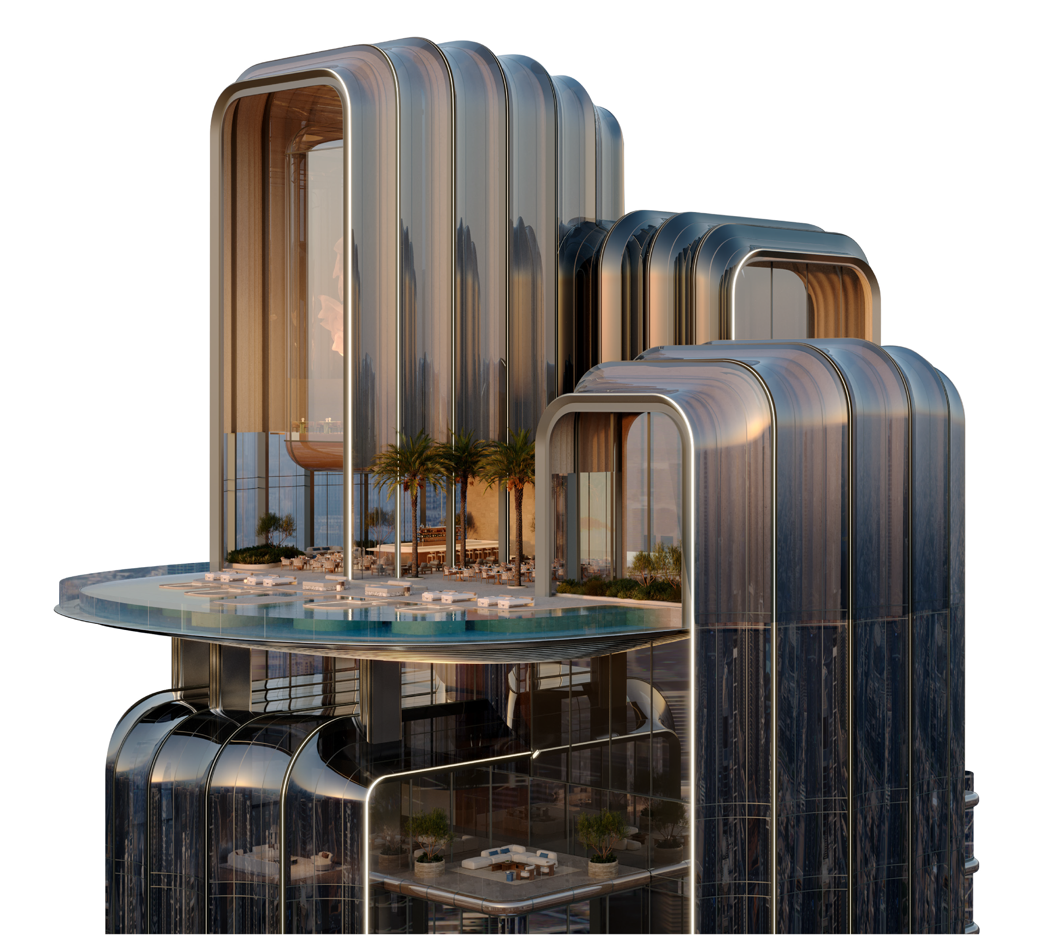 Five-Star Sky Hotel crowning the tower