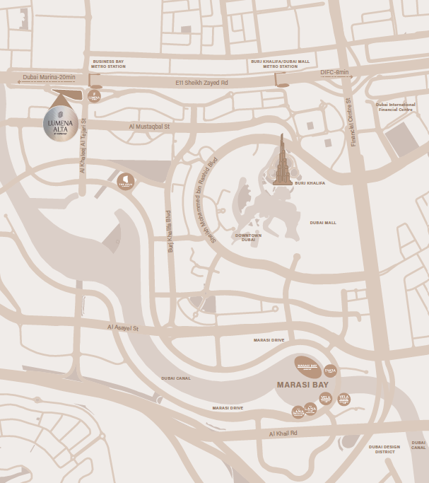 Neighbouring LUMENA within Dubai’s central business cluster, LUMENA ALTA enjoys immediate access to the city’s primary corridors, with direct links to Sheikh Zayed Road and swift connections to Al Khail Road, placing you minutes from key destinations.